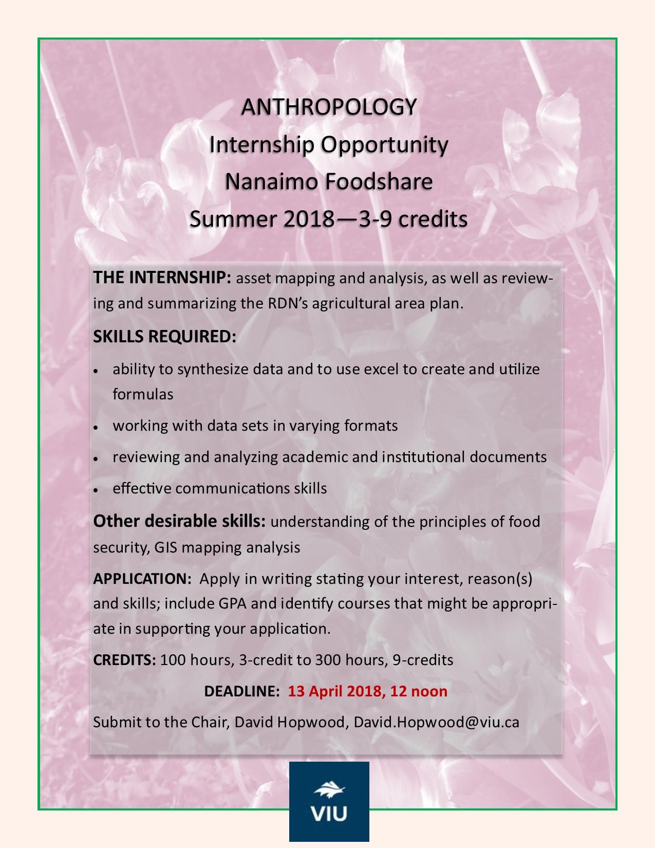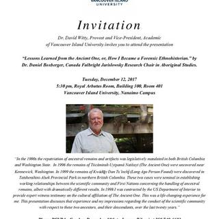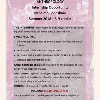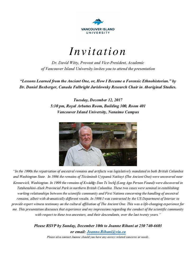 This is a snapshot of courses, projects, events, and activities undertaken by students and faculty of the Department of Anthropology, Vancouver Island University from Intersession 2017 to Spring 2018.